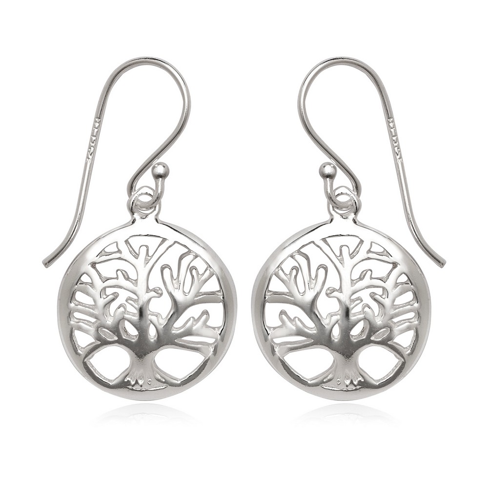 Classic Of New York Sterling Silver Round Open Circle with Center Tree Earrings