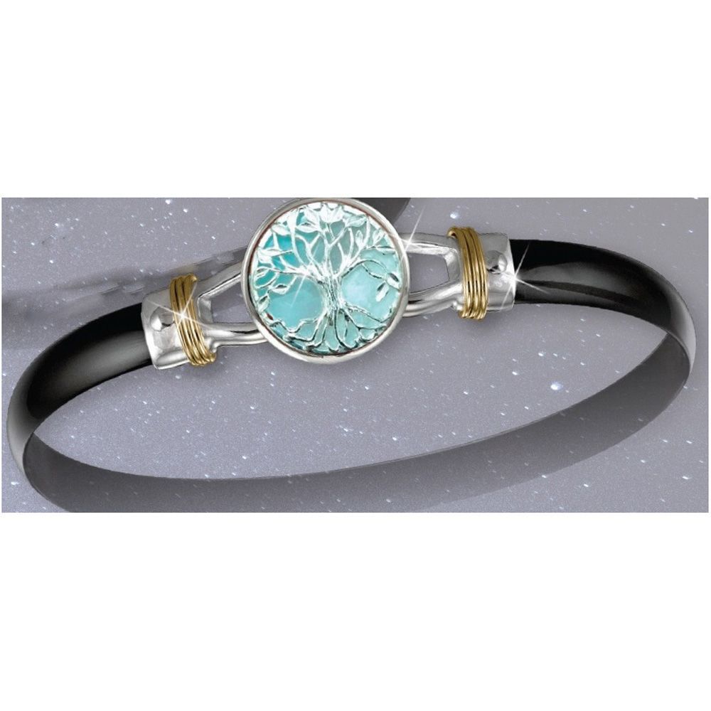 • Sterling Silver 6mm Black Titanium Bar with Silver Tree of Life Larimar and 14K Yellow Gold Wraps