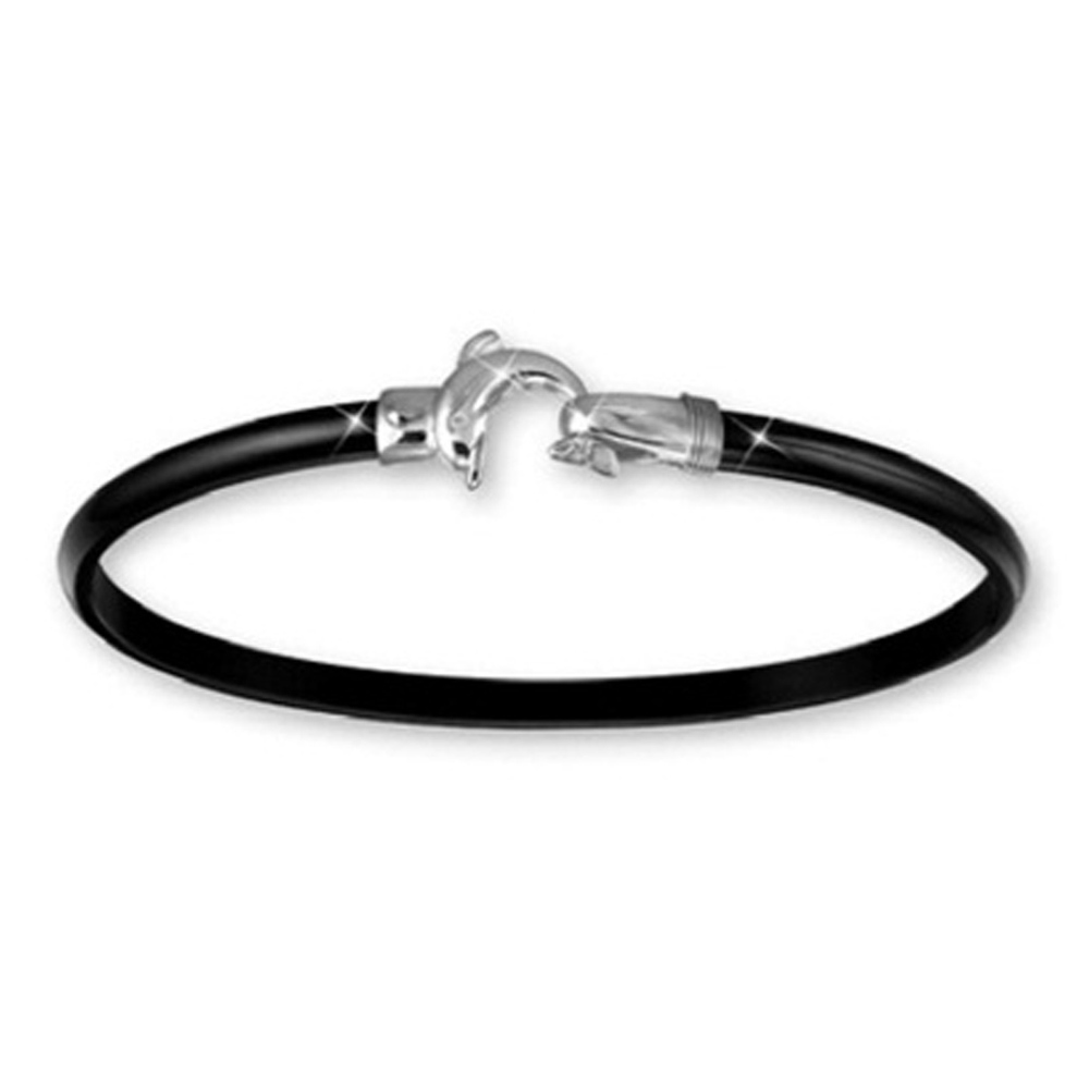 Black Titanium Dolphin Bracelet - Sterling Silver Hook Sterling Silver Wrap 4mm 6.5 Inch