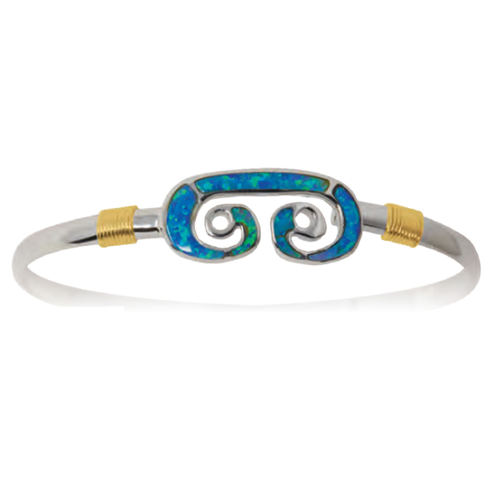 Ss 4mm Petroglyph Bracelet W/created Opal Inlay 14ky Wraps 7.0 Inch - C4OPPET70