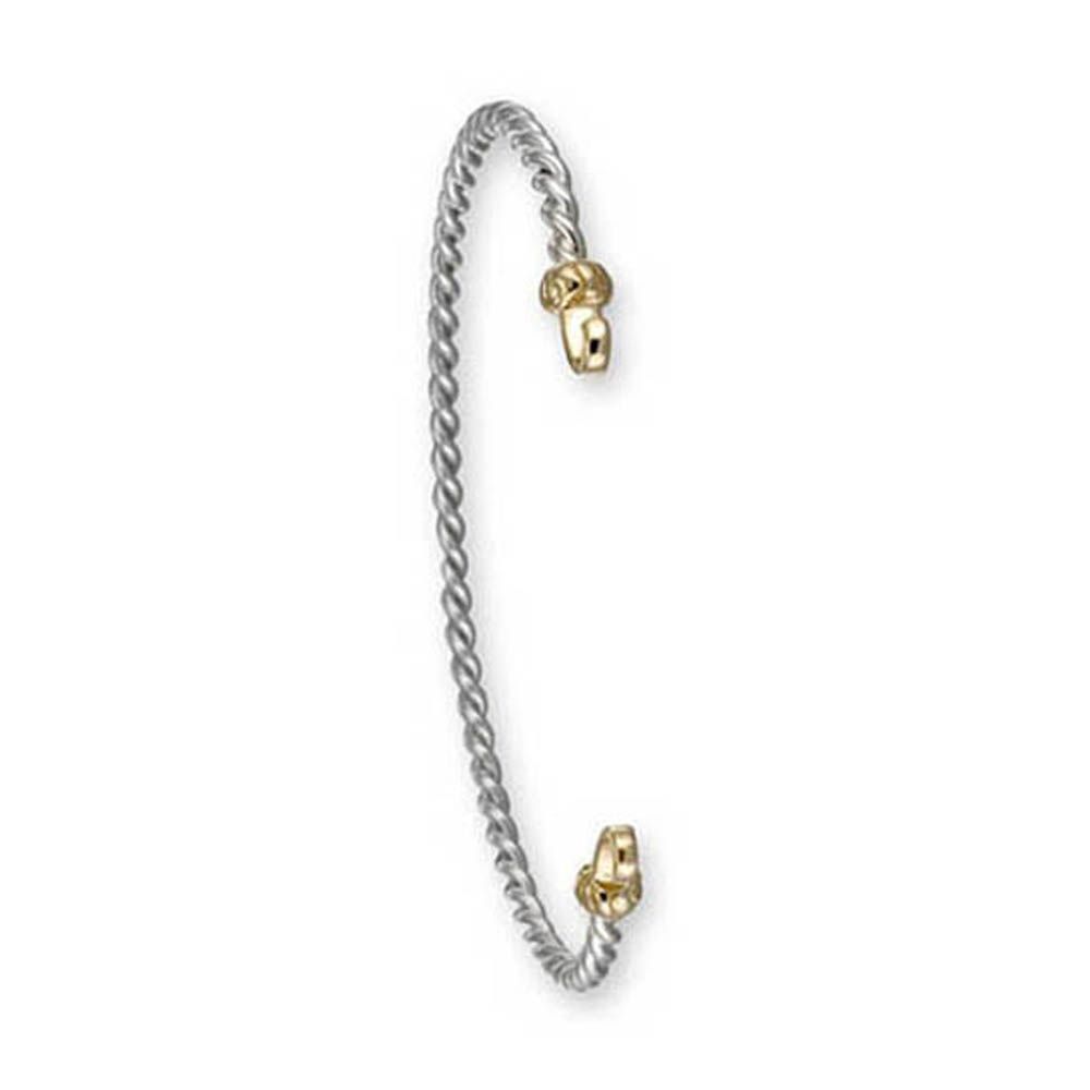 • Sterling Silver 3mm Custom Clasp Twisted Wire Bracelet with 14K Yellow Gold Caps