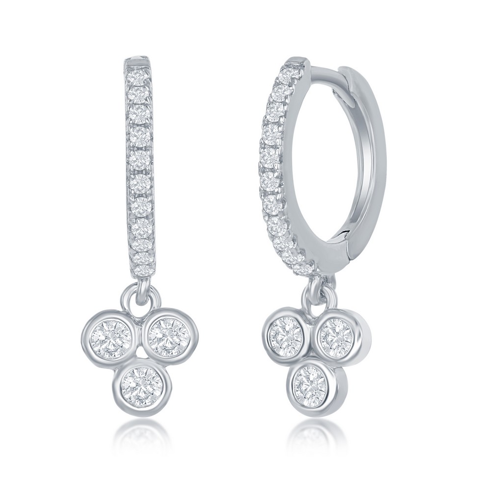 Classic Of New York Sterling Silver Small Huggie Hoop Triple Cluster CZ Earrings