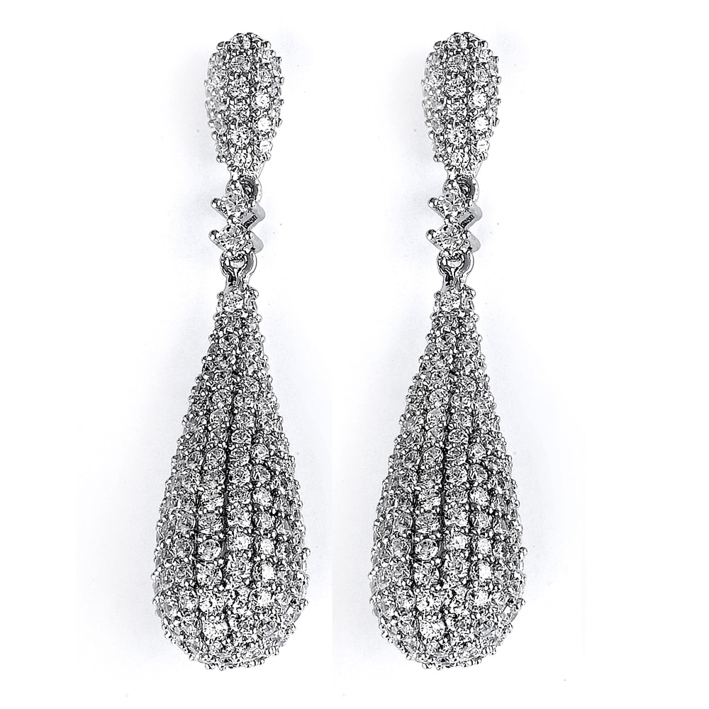 • This Sterling Silver Rhodium Plated and Micro-Pave CZ Teardrop Dangle Earrings is available in Sterling Silver