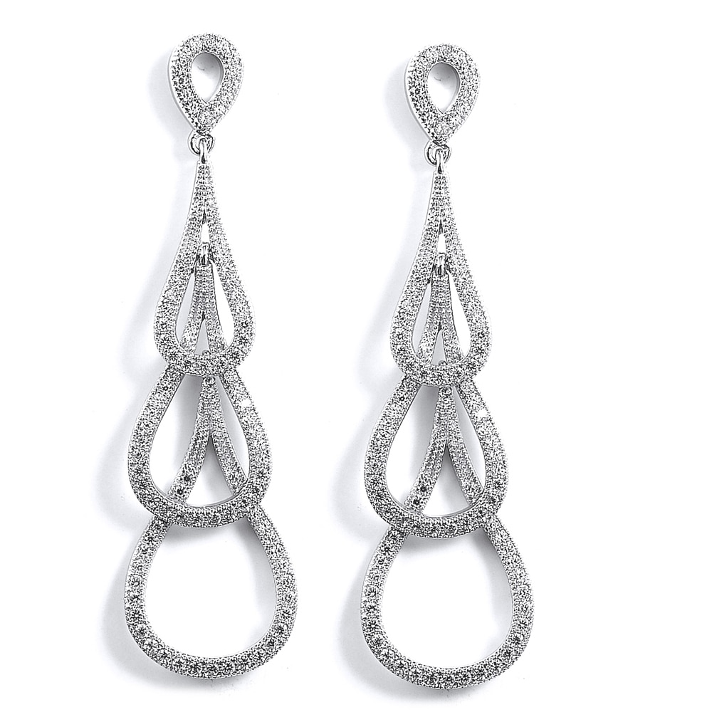 • This Sterling Silver Rhodium Plated and CZ Triple Teardrop Dangle Earrings is available in Sterling Silver