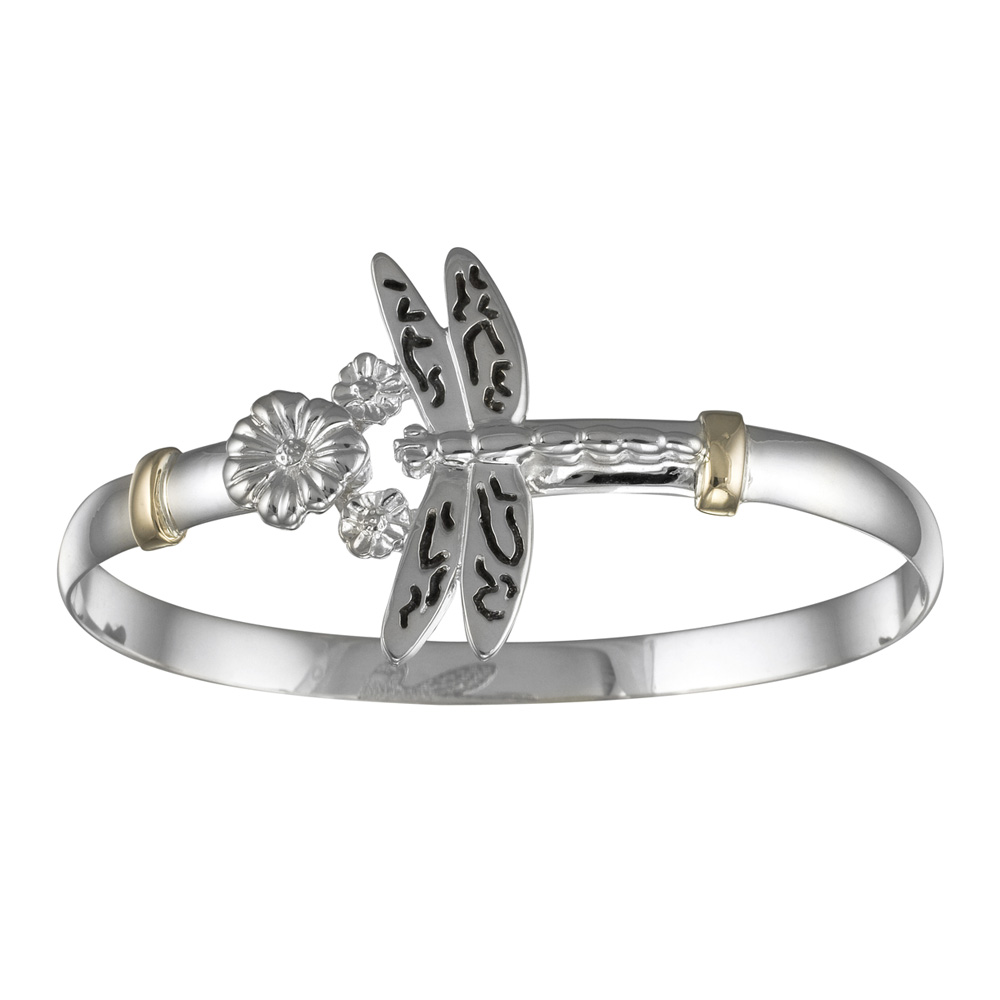 • Sterling Silver 6mm Dragonfly Hook Bracelet with 14K Yellow Gold Wraps