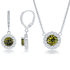 Classic Of New York Sterling Silver Peridot CZ August Birthstone w CZ Border Round Earrings and Necklace Set