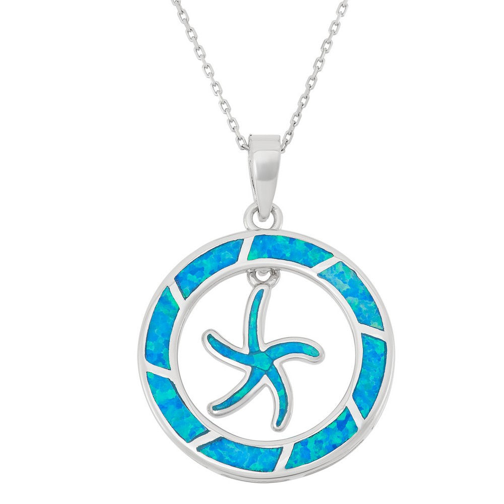 Classic Of New York Sterling Silver Open Blue Inlay Opal Circle with Center Starfish Pendant