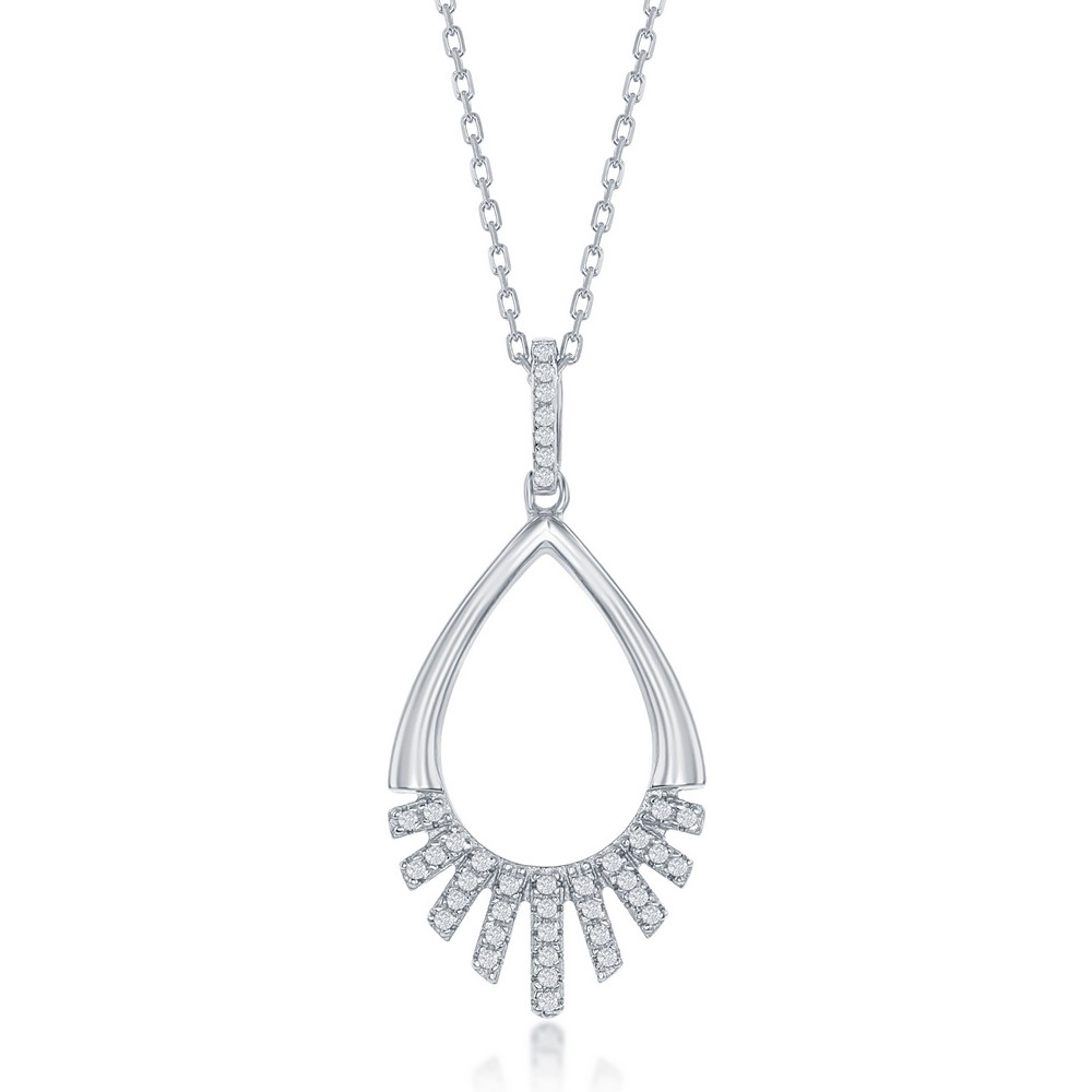 Classic Of New York Sterling Silver Half CZ Pear-Shaped Pendant