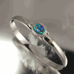 Opal Inlay Turtle Hook Bracelet - Sterling Silver 14K Gold 6mm Wide