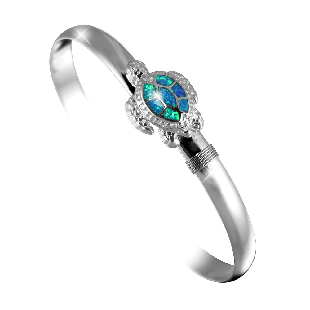 Ss 6mm Turtle Bracelet W/ Imi Opal Inlay Ss Wraps 7.0 Inch - S6OPTUR70