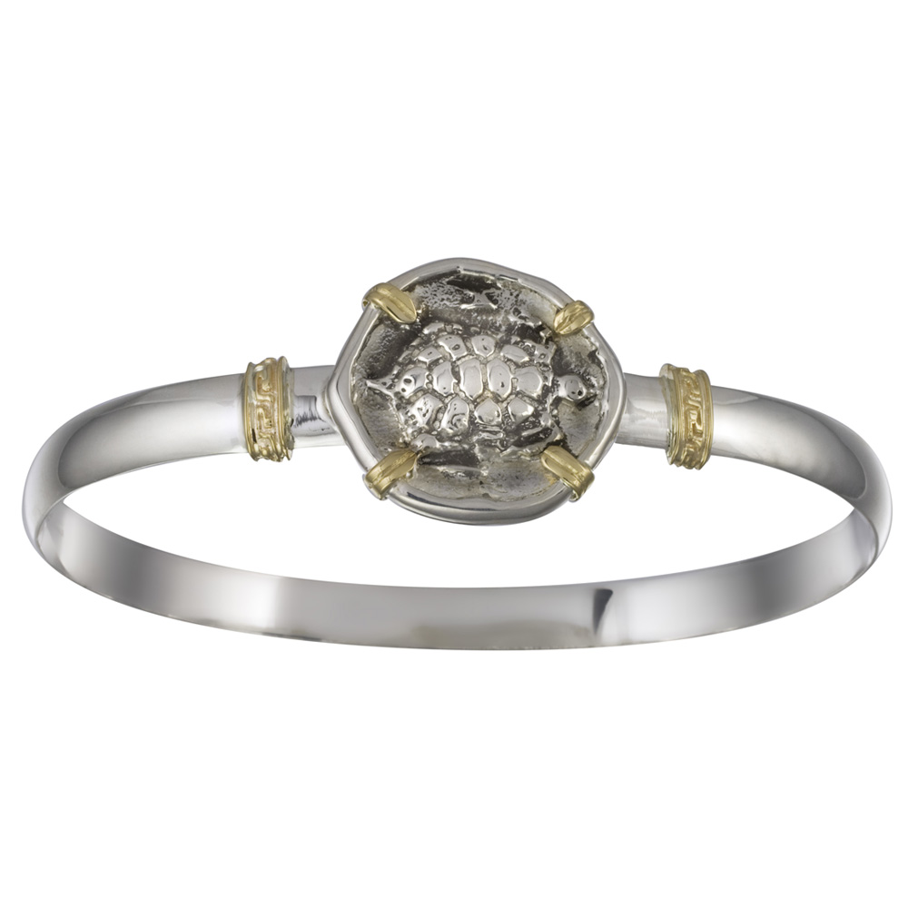 Silver / Gold Caribbean Hook Bracelet, Ancient Turtle Coin Two Tone Bracelet