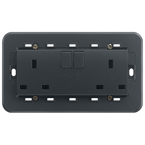 Eikon British Duplex Outlet W/2 X Switches, 2p+e 13a-250v, 5 Module W/frame, Grey - Vm20222.l