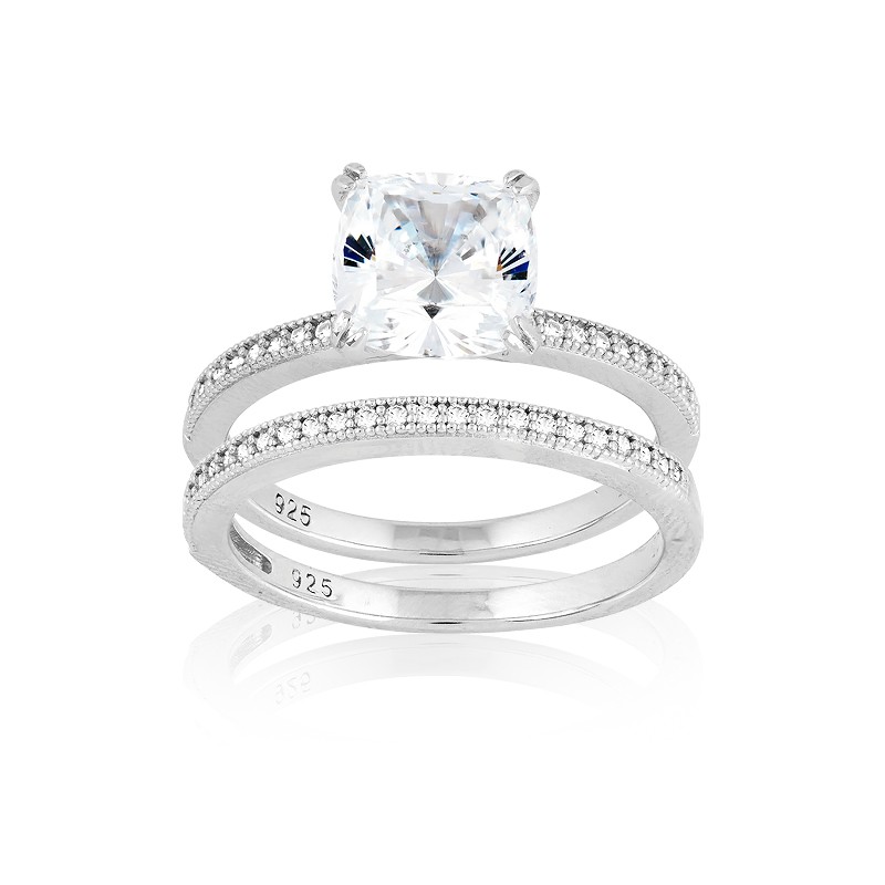 Classic Of New York Sterling Silver Double-Band Large Center Square CZ and Micro Pave Ring (48 stones)